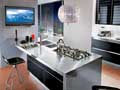 Самым распространенным материалом для столешниц и стеновых панелей остается ламинат, который при весьма доступной цене способен имитировать натуральные материалы: камень, дерево, кожу. При этом он стойко переносит кухонные нагрузки. Мечта многих хозяек - столешница из искусс твенного камня, красивая и долговечная | | |